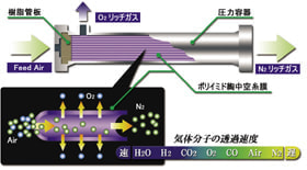 - 窒素分離膜は水と接触しないので、汚れによる膜モジュールの交換は不要です。